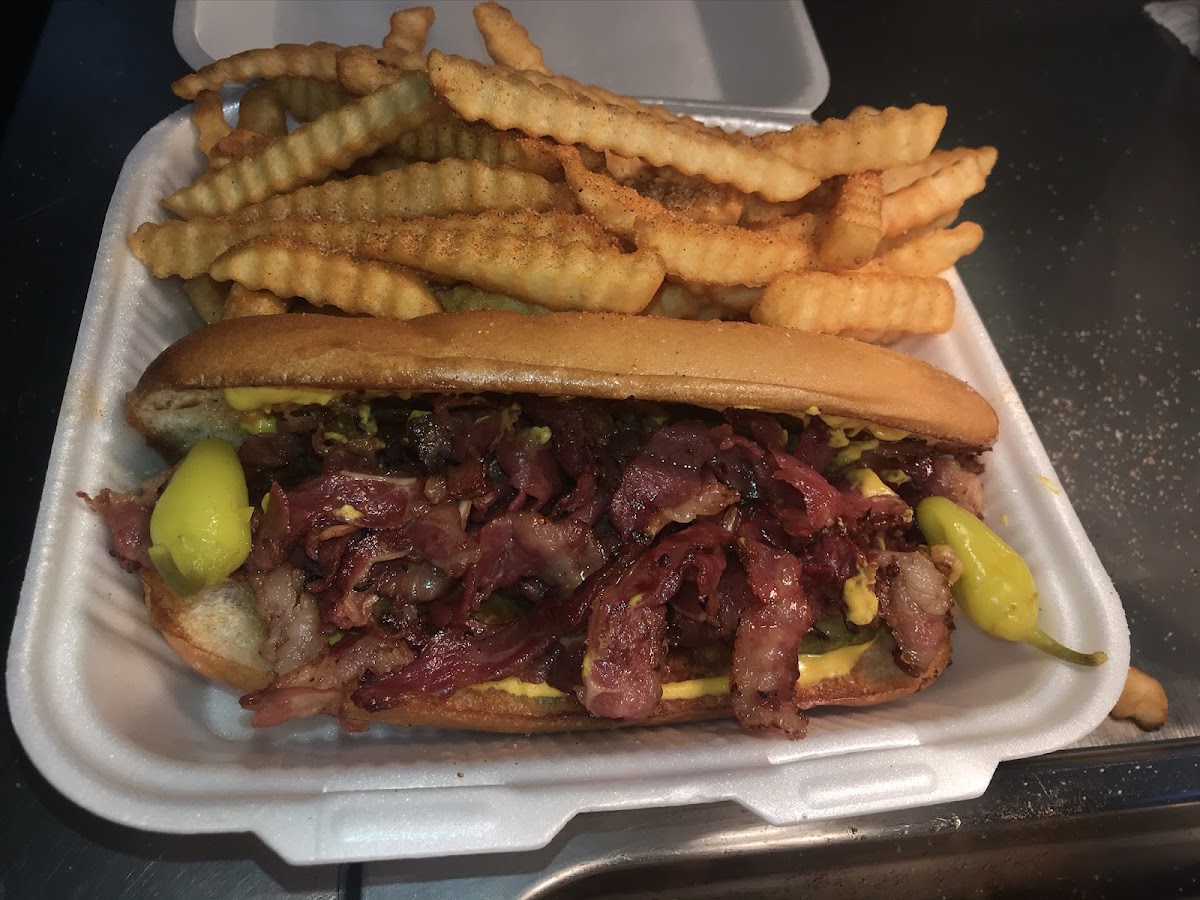 For lunch or dinner, the Pastrami Cheeseburger is an absolute crowd-pleaser. This delicious burger combines tender pastrami with a juicy beef patty, topped with melted cheese and all the classic fixings. It’s the kind of burger that leaves you wanting more after each bite. Served with a side of crispy fries or onion rings, it’s comfort food at its best.